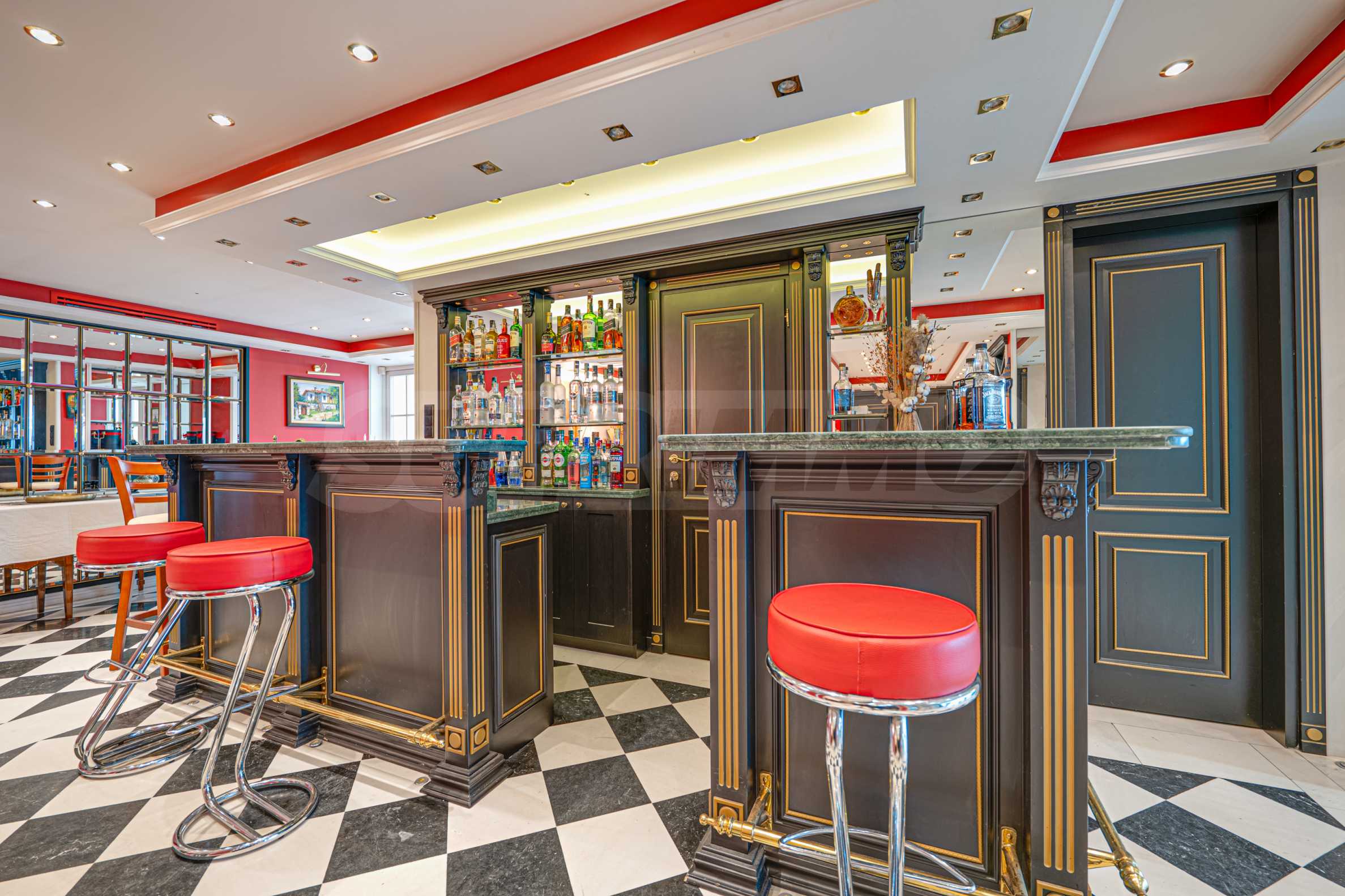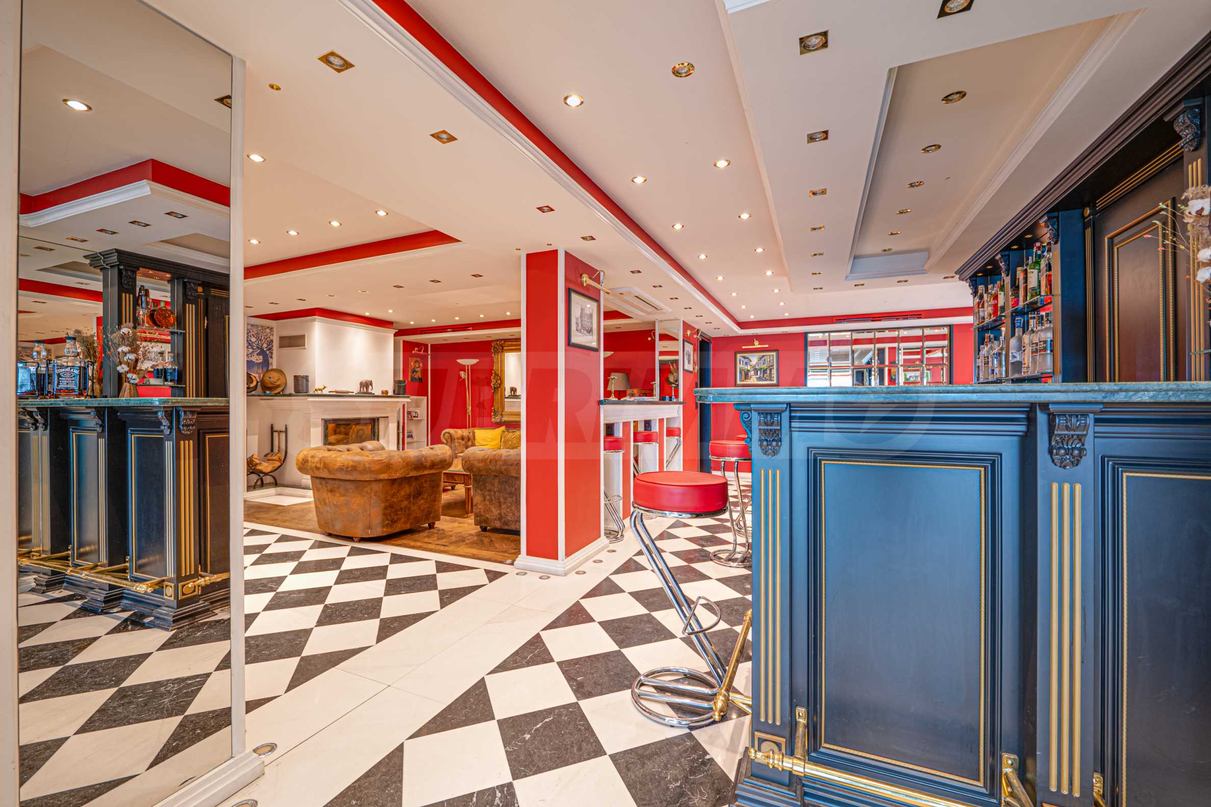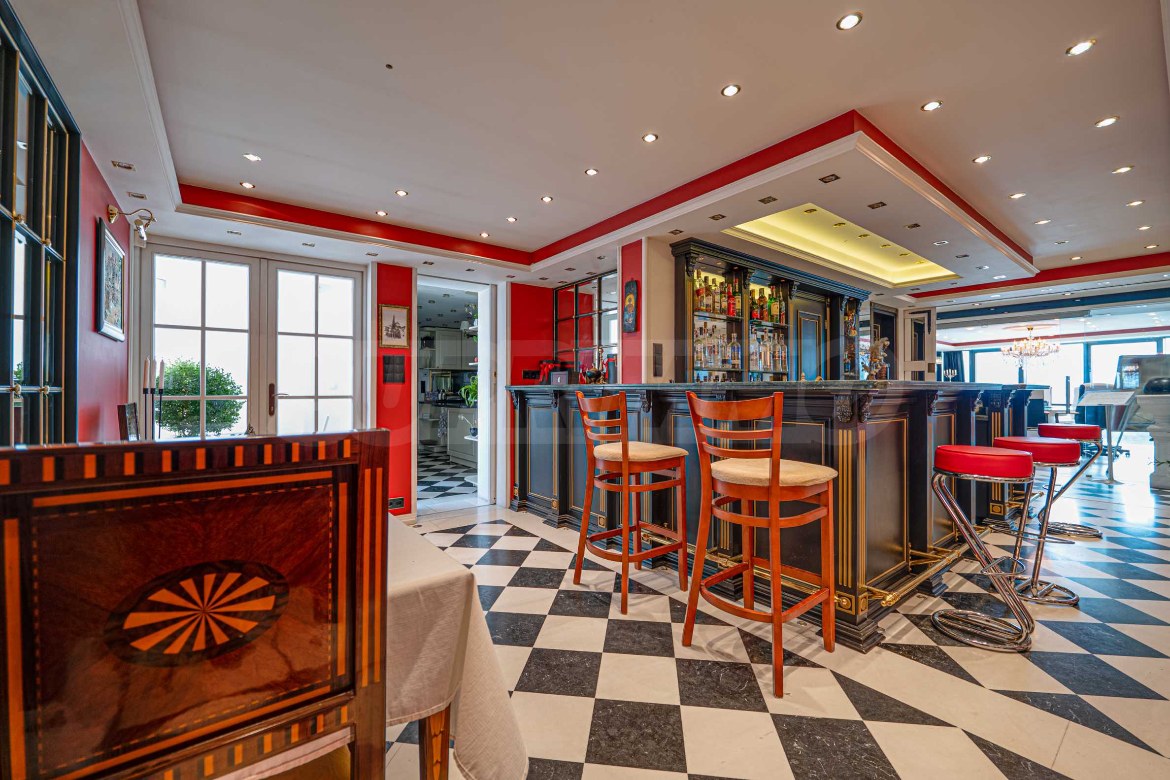 - бар со встроенным холодильником, раковиной и шкафами.