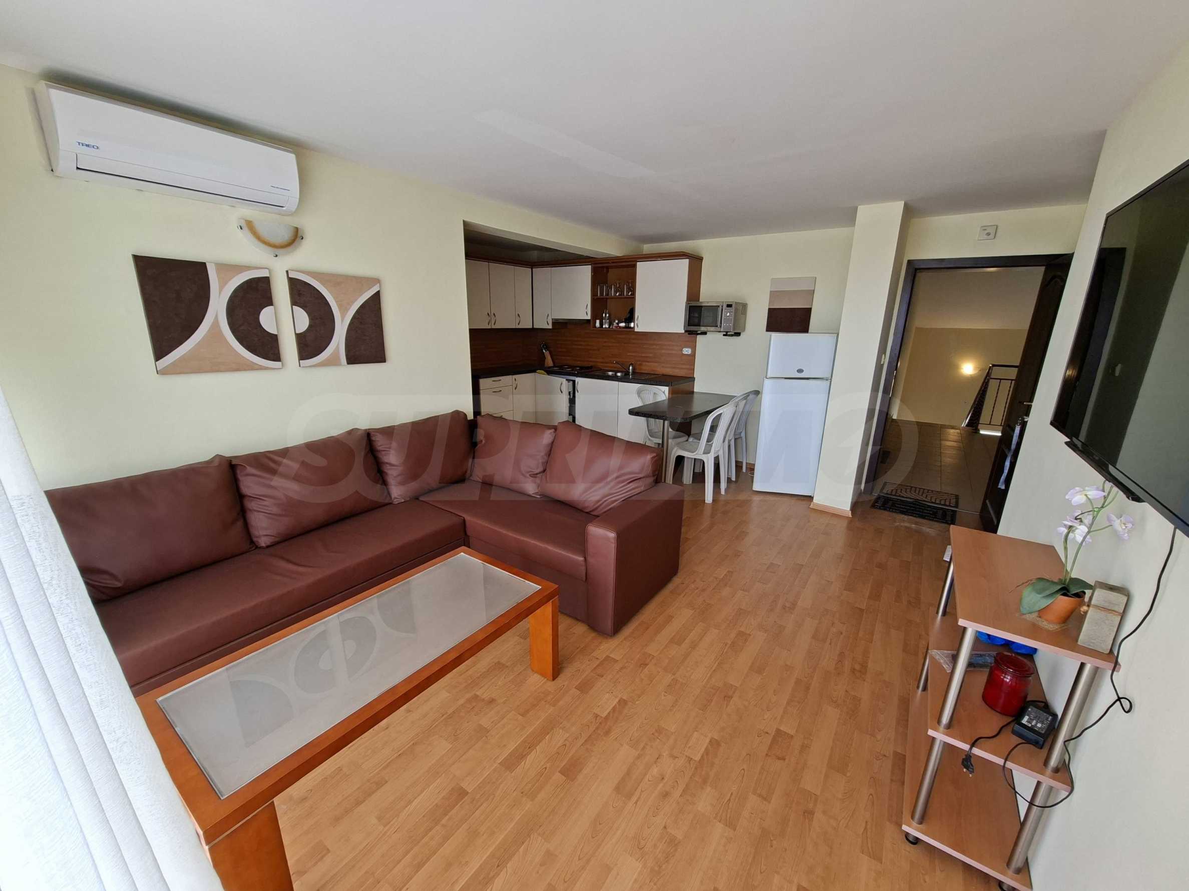 Предлагаем к продаже светлую и просторную однокомнатную квартиру с видом на море в закрытом жилом комплексе на первой линии моря в Свети-Власе. 60 метров от пляжа, 300 метров от порта Марина-Диневи, с быстрым доступом к центру курорта, а также к магазинам, кафе, гипермаркету и регулярному общественному транспорту.