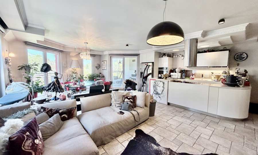 • Гостиная с обеденным столом, диванами и полностью оборудованной кухней, с выходом на две террасы, одна из которых оборудована встроенным барбекю;