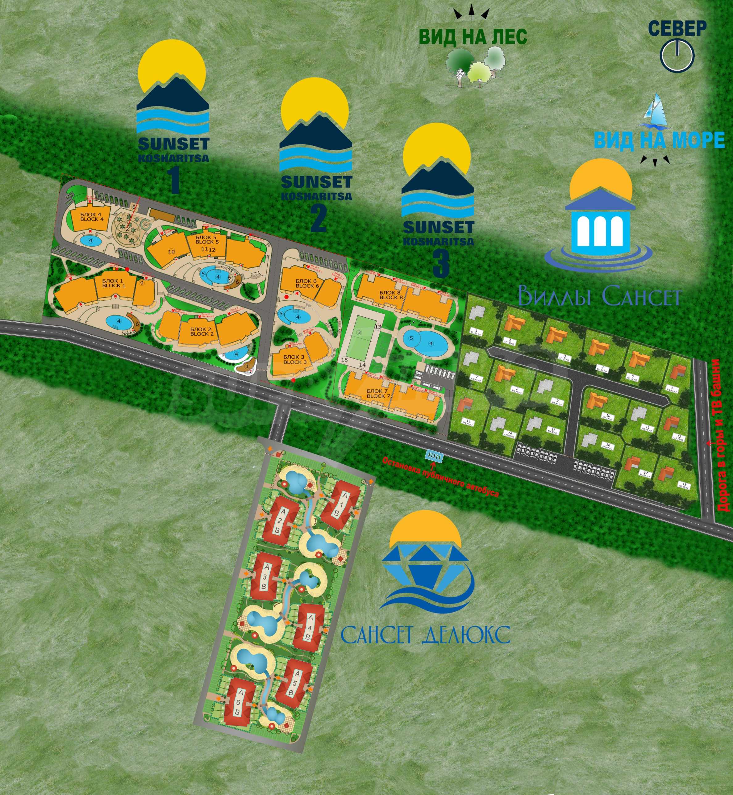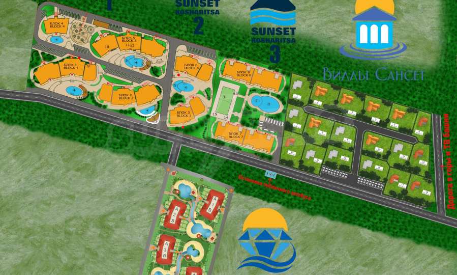 Земельные участки под застройку, для которых подведены все коммуникации - электричество, вода и канализация. На территории элитного курортного поселка ВИЛЛЫ САНСЕТ / SUNSET VILLAS, часть мини-курорта САНСЕТ КОШАРИЦА / SUNSET KOSHARITSA. Отличное местоположение в непосредственной близости от красивого и тихого курортного поселка Кошарица. Примерно в 6 км от пляжей самого большого болгарского морского курорта - Солнечный Берег. Рядом с лесом и у подножия последних возвышений гор Стара Планина.