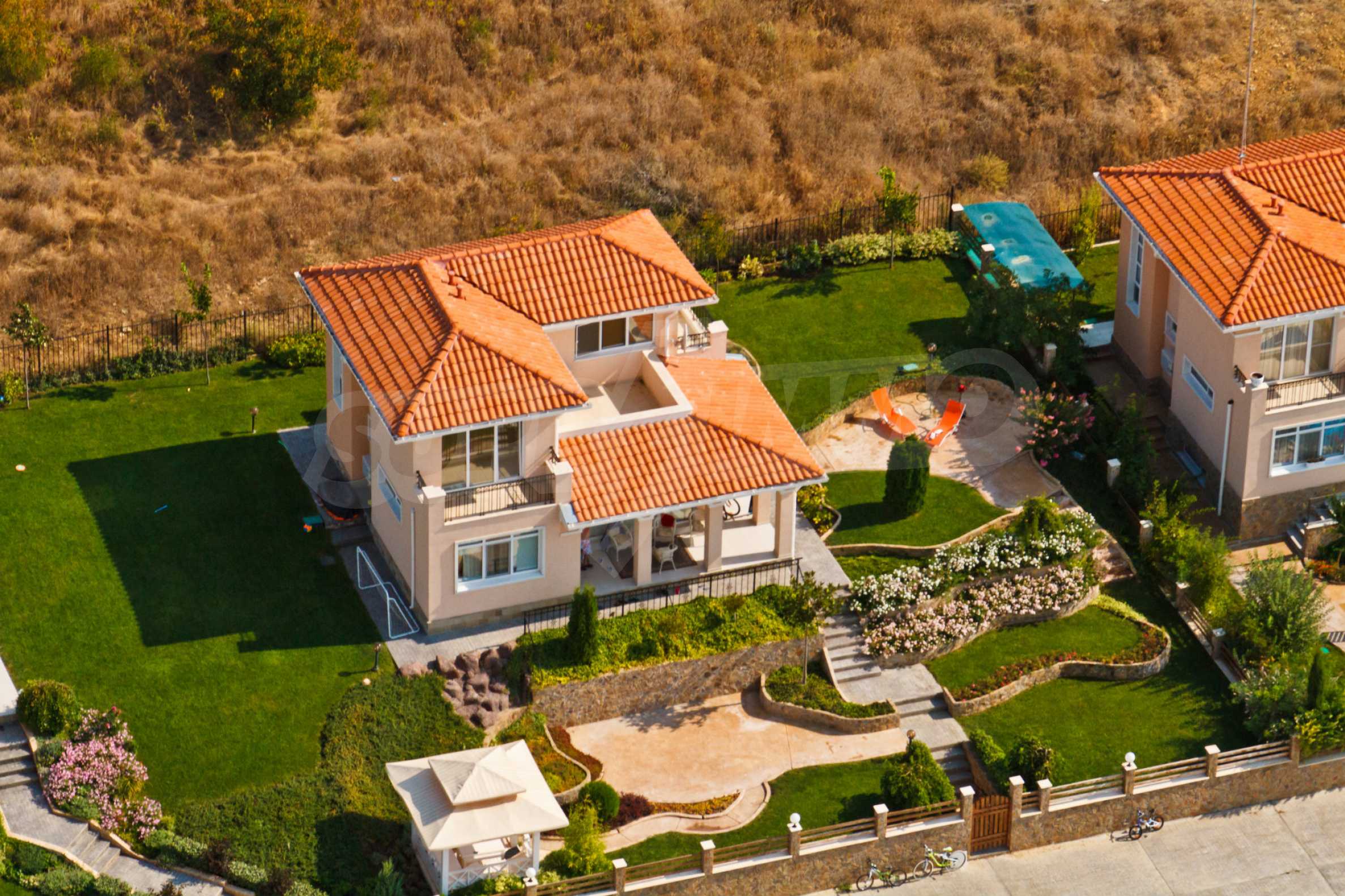 Каждый владелец обязательно оплачивает годовой сбор за обслуживание в размере 600 Евро, который включает уход, обслуживание дачного поселка и его охрану.