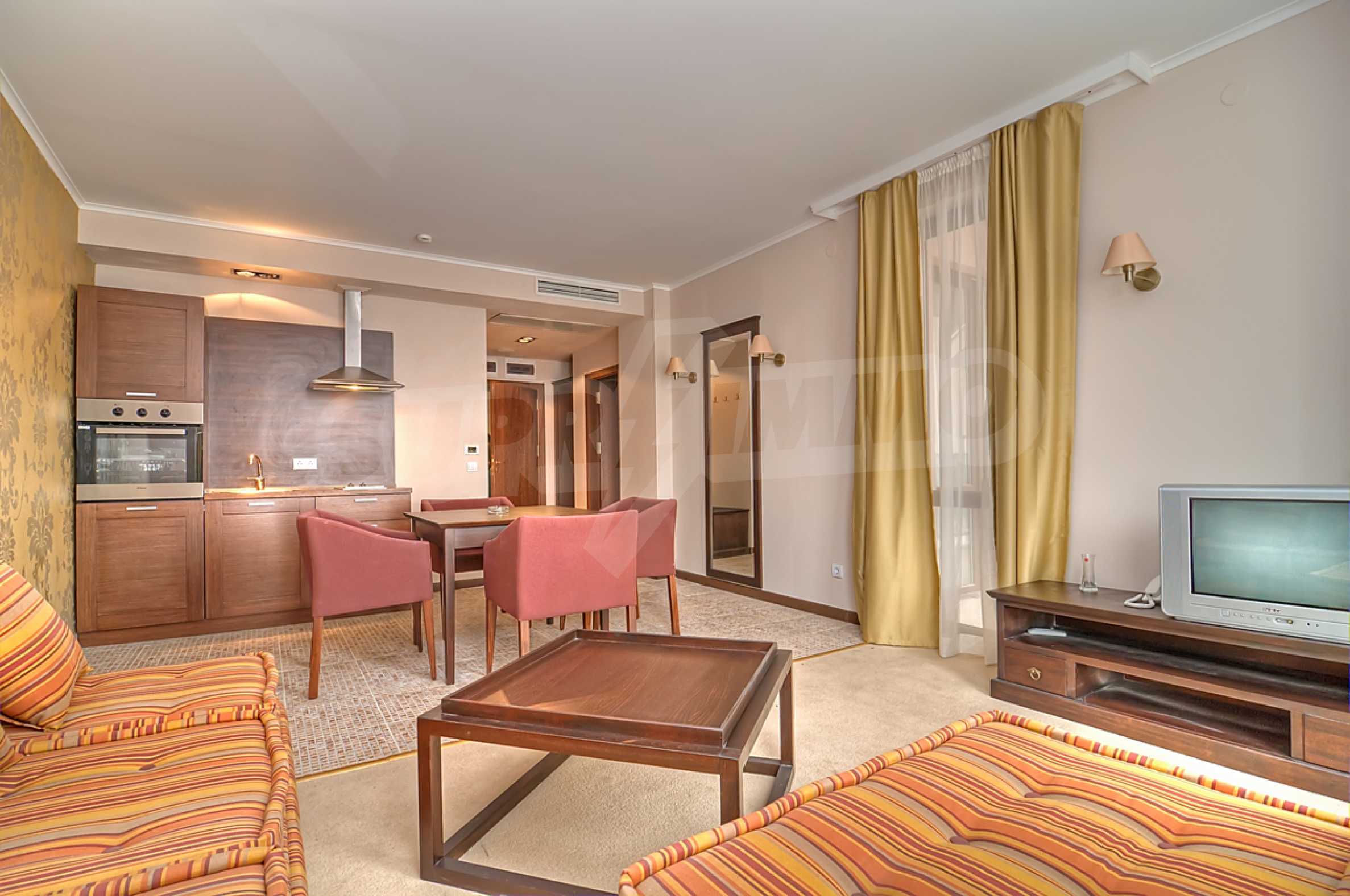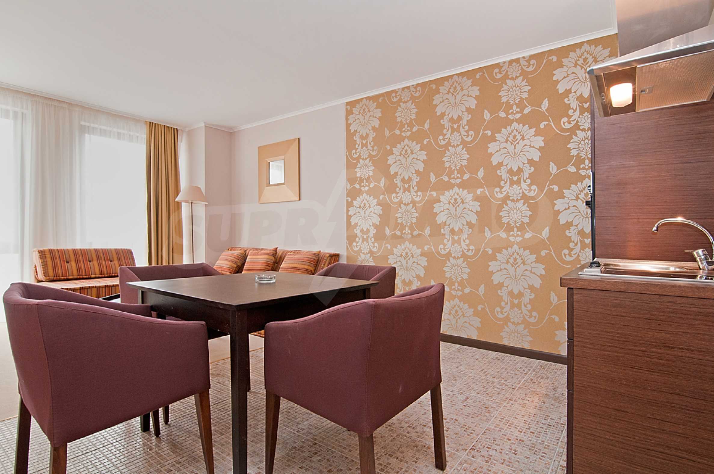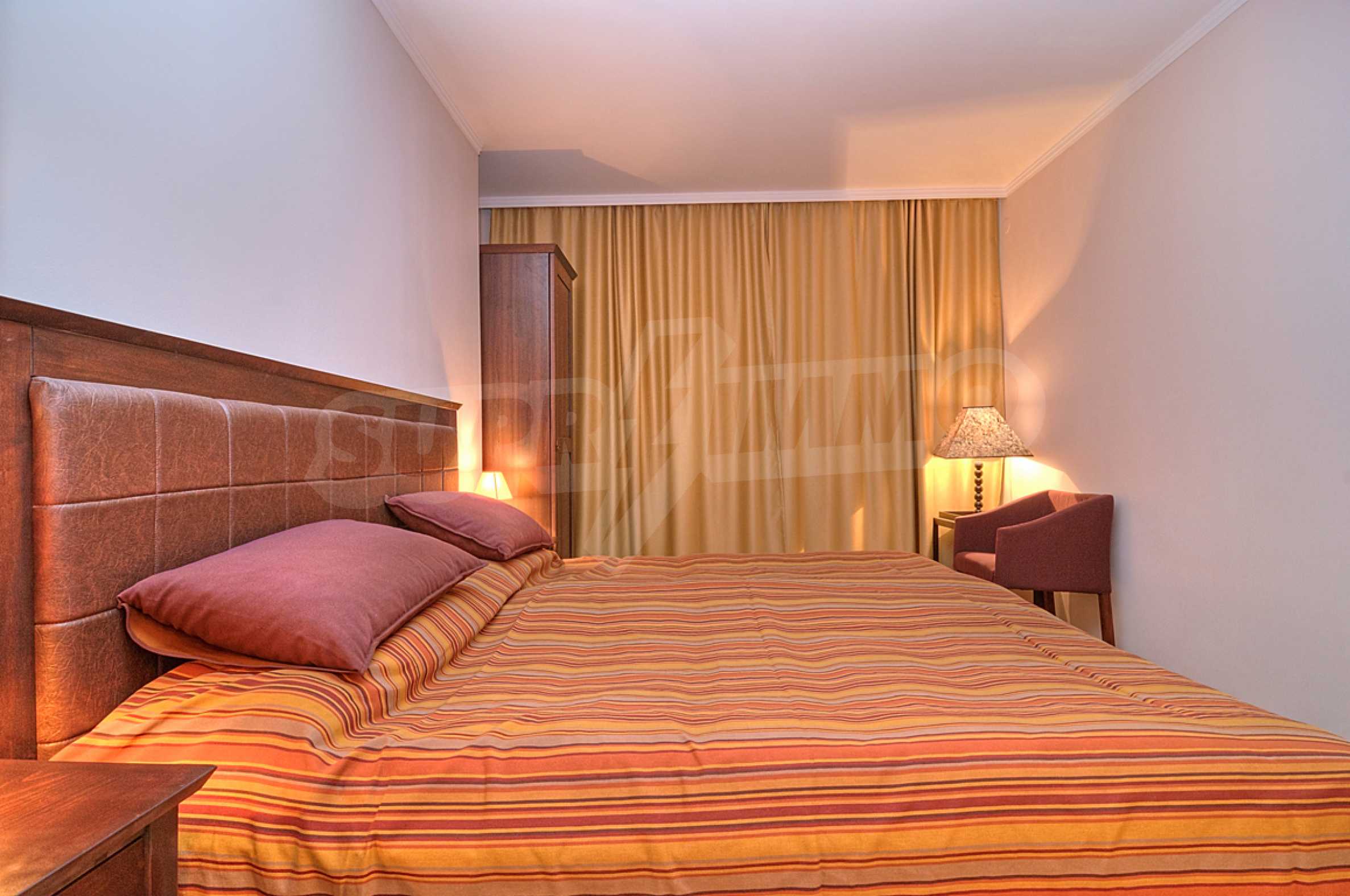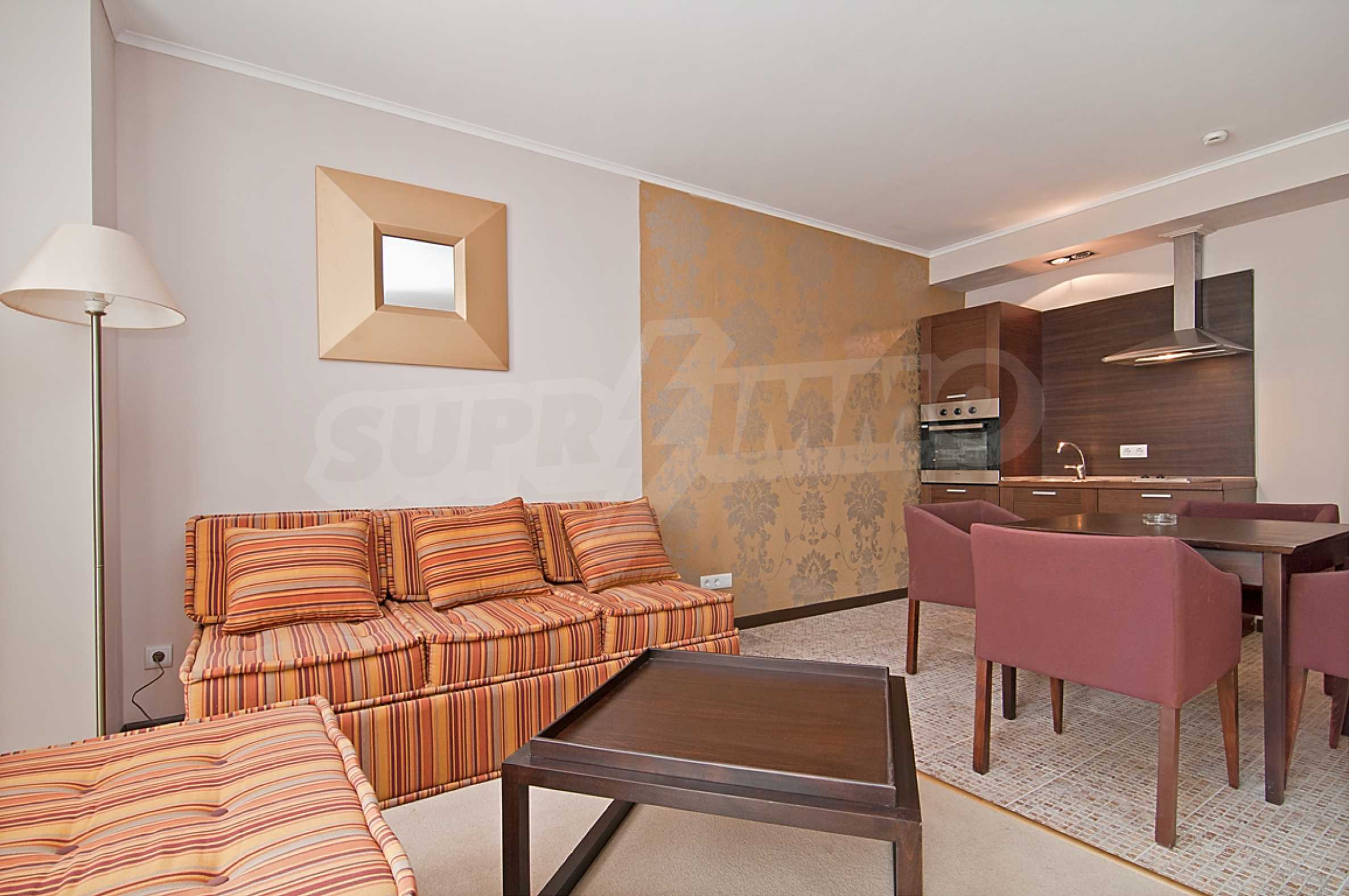 Стильно меблированная двухкомнатная квартира на продажу в престижном комплексе на второй линии до пляжа и центра Солнечного Берега.